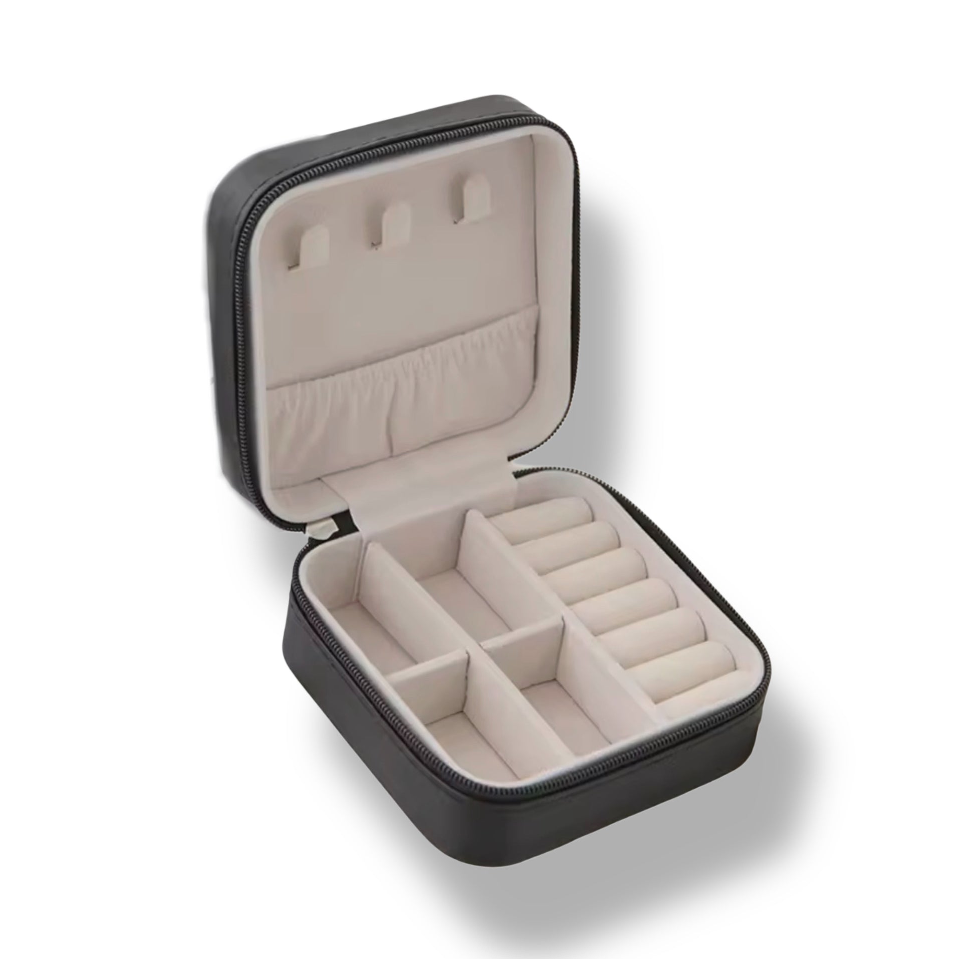 Alhajero compacto con cierre de cremallera, ideal para organizar y proteger tus piezas.