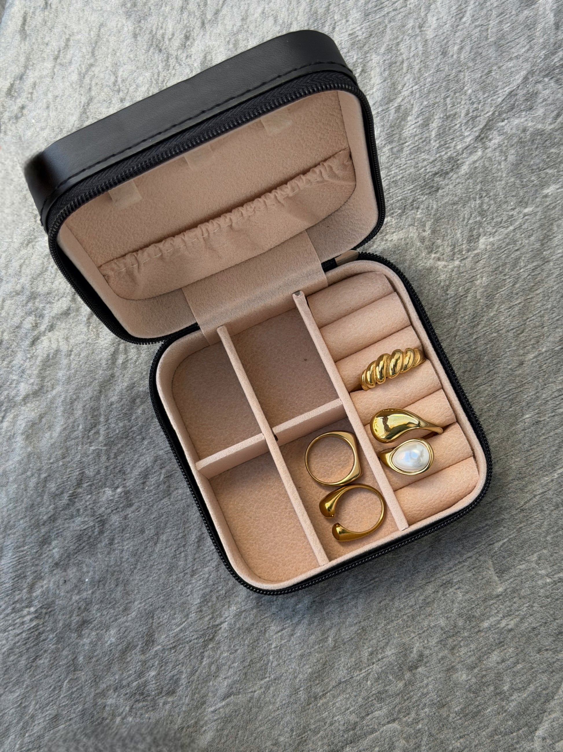 Exterior rígido en acabado liso e interior forrado suave para mayor protección. Ideal para viajes o para mantener tu joyería organizada en casa.