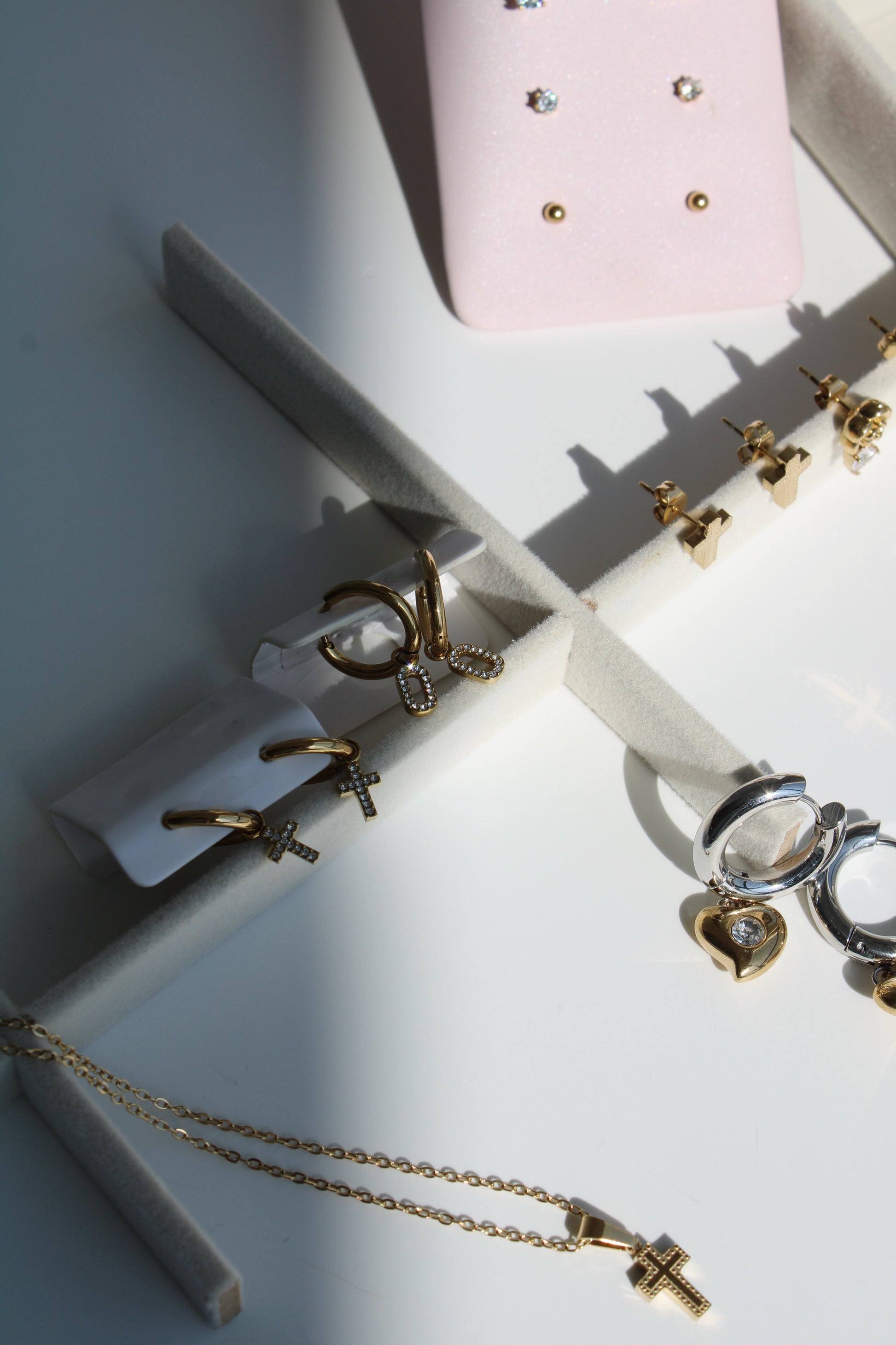 Nuestras joyas están hechas de acero inoxidable, un material duradero y resistente al agua. Las piezas doradas cuentan con un baño de oro PVD de 18 quilates, lo que garantiza un color de larga duración (varios años) y una alta resistencia al desgaste.