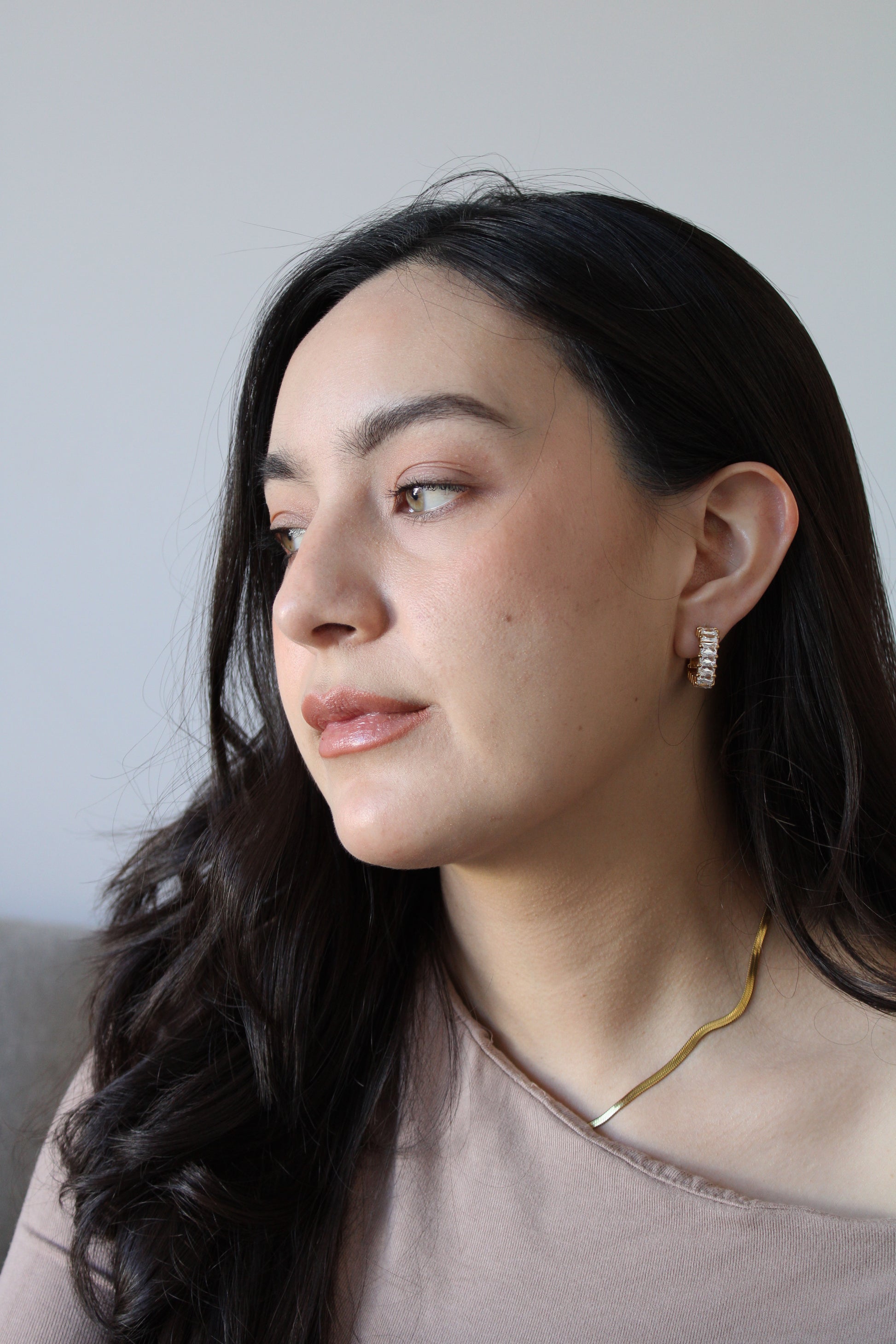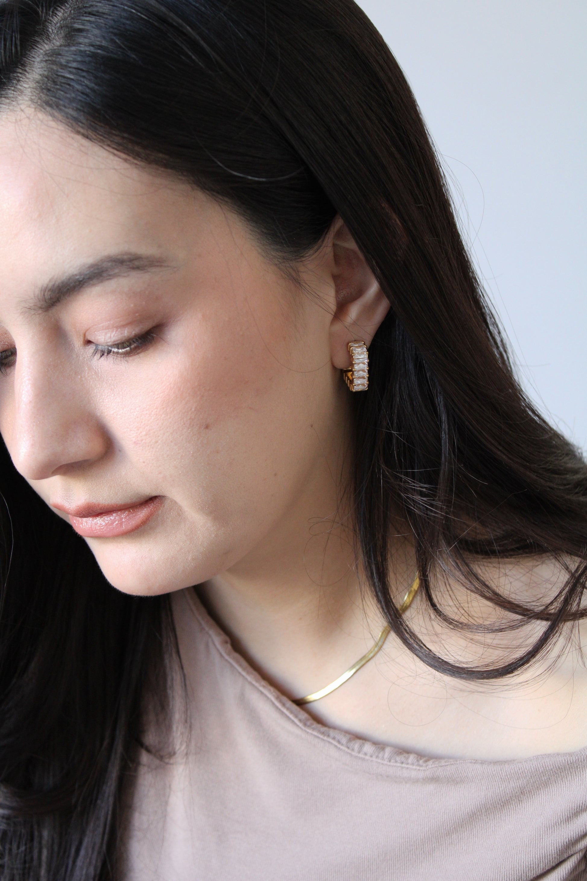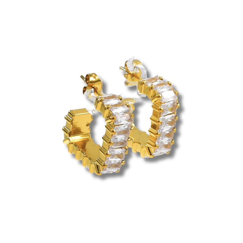Aretes tipo arracada con zirconias corte rectangular al frente.