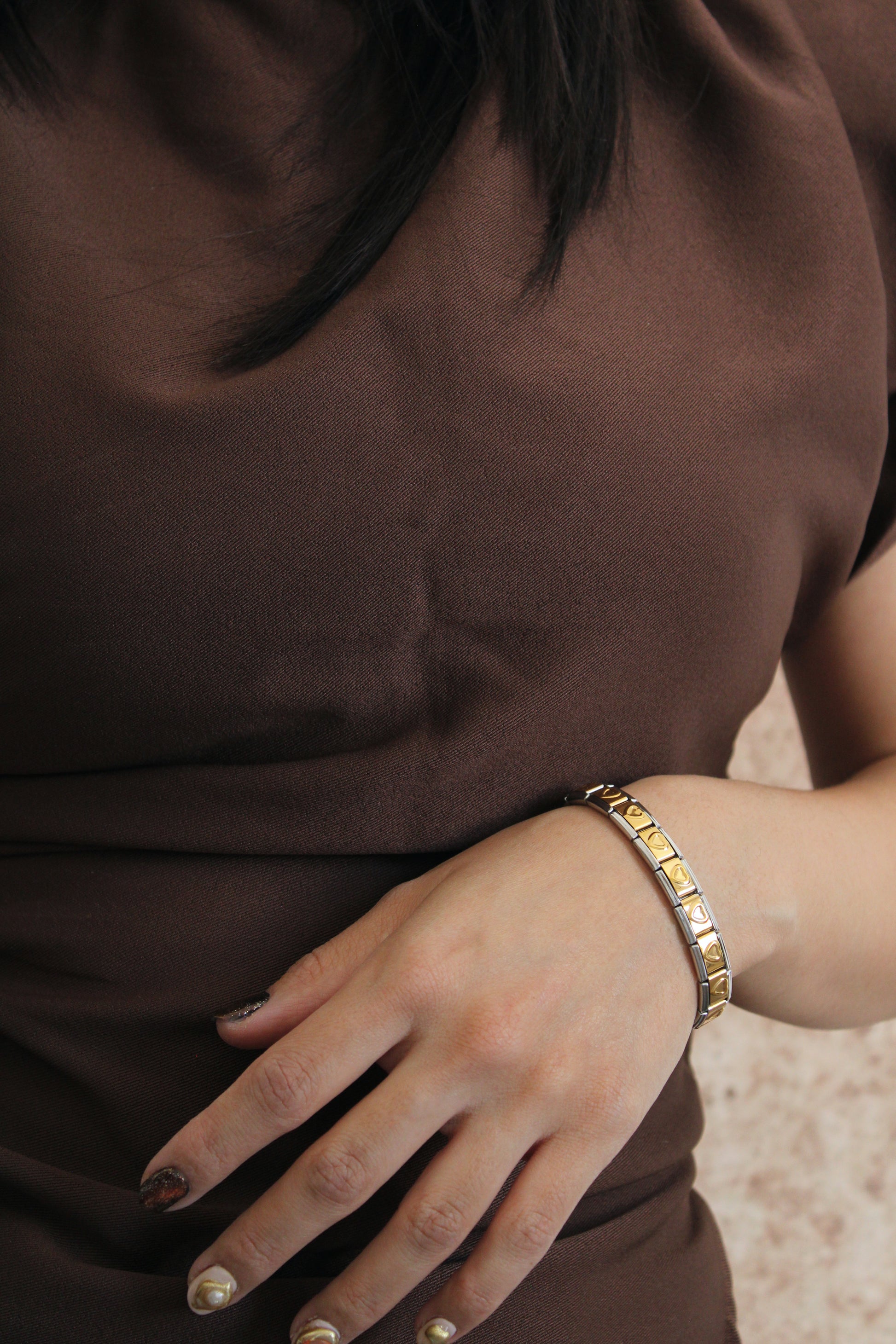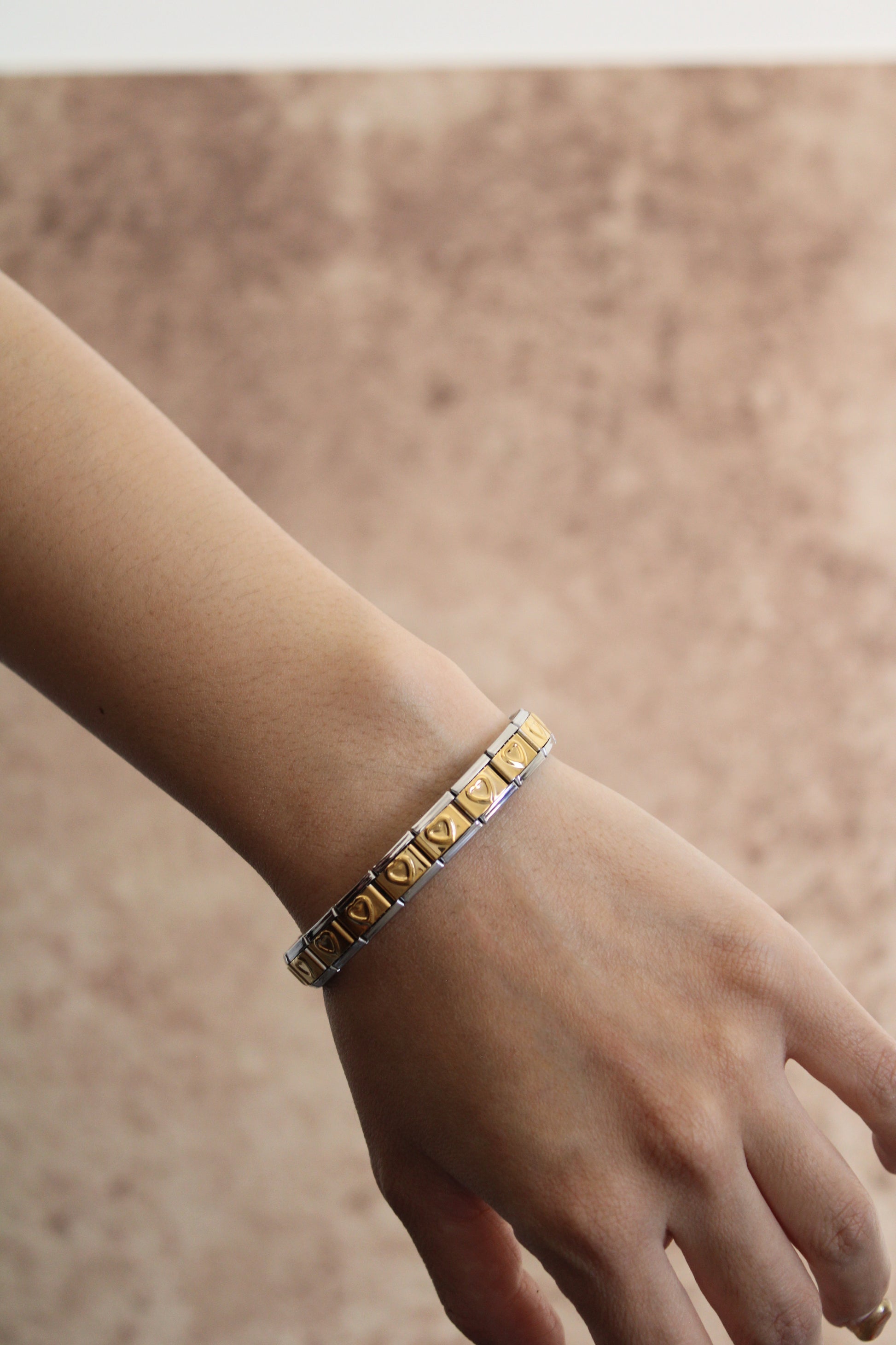 Brazalete italiano con borde plata y corazones dorados 💖 Compatible con charms.