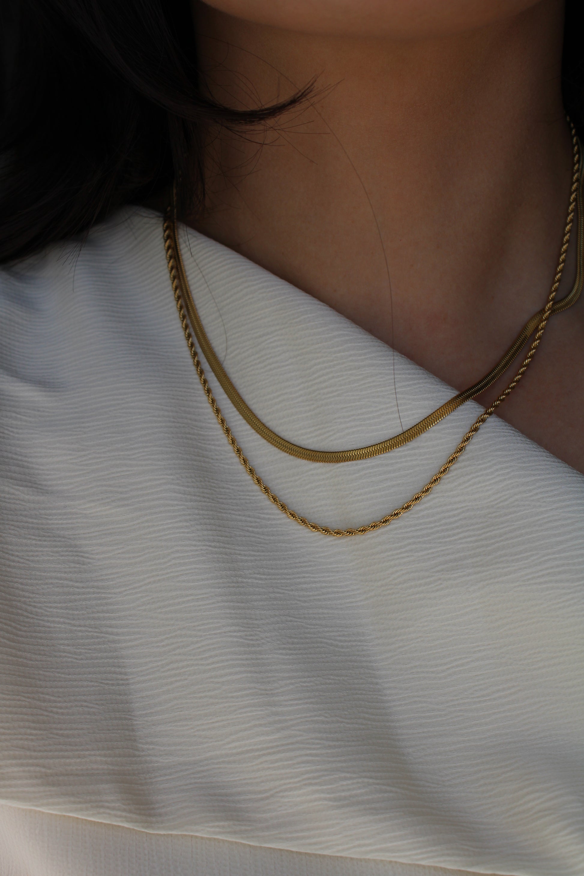 Nuestras joyas están hechas de acero inoxidable, un material duradero y resistente al agua. Las piezas doradas cuentan con un baño de oro PVD de 18 quilates, lo que garantiza un color de larga duración (varios años) y una alta resistencia al desgaste.