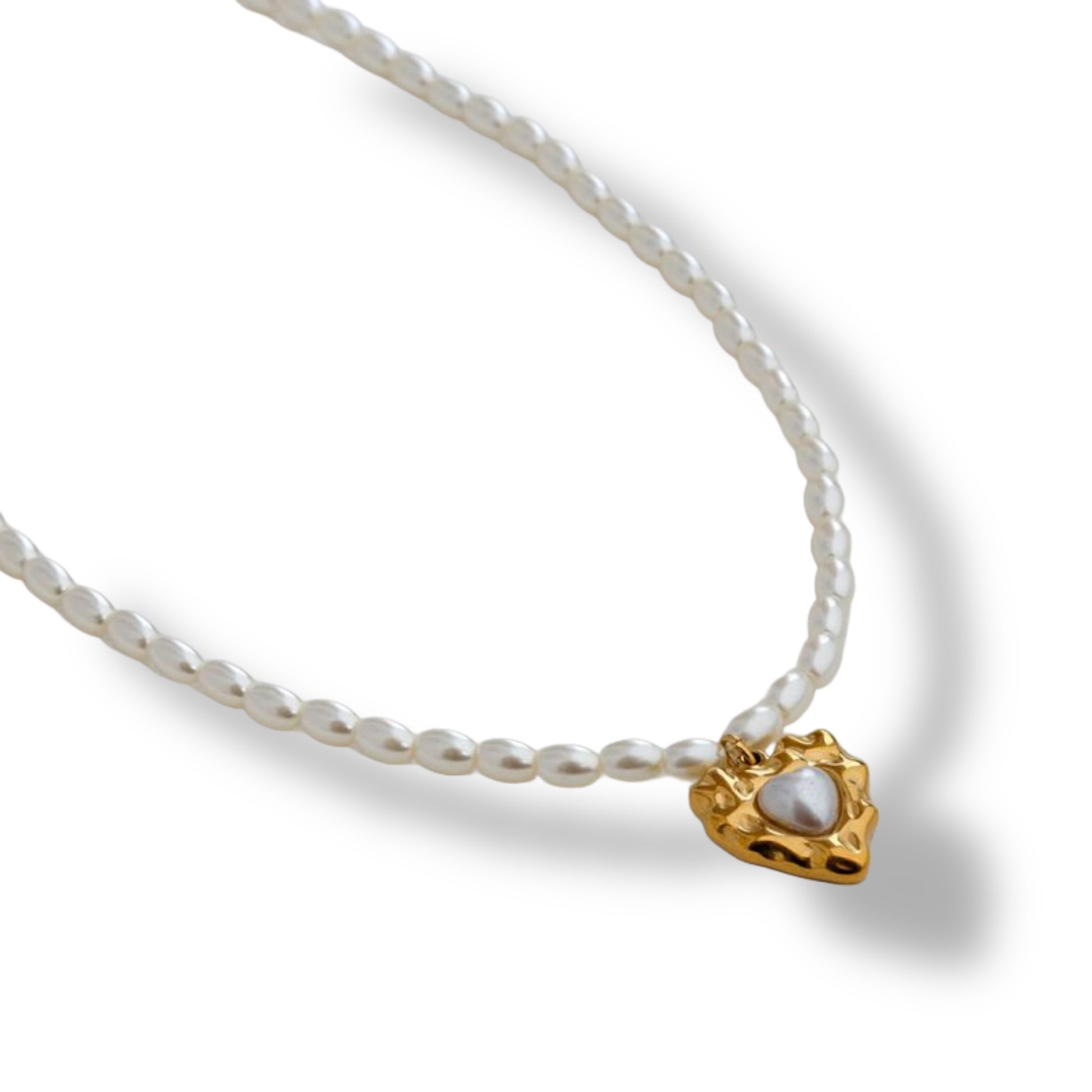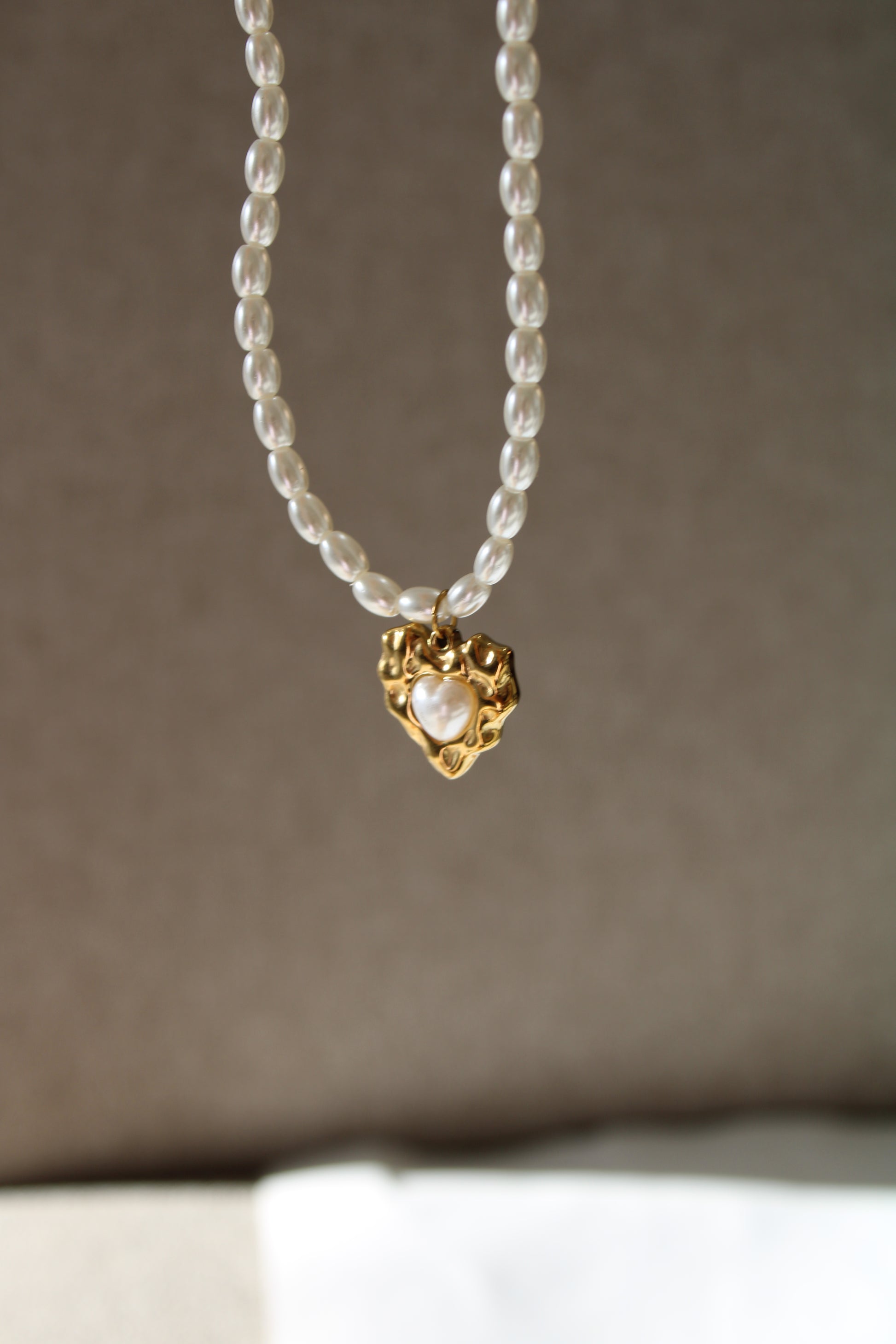 Collar con diseño de imitación de perla con dije de acero inoxidable.