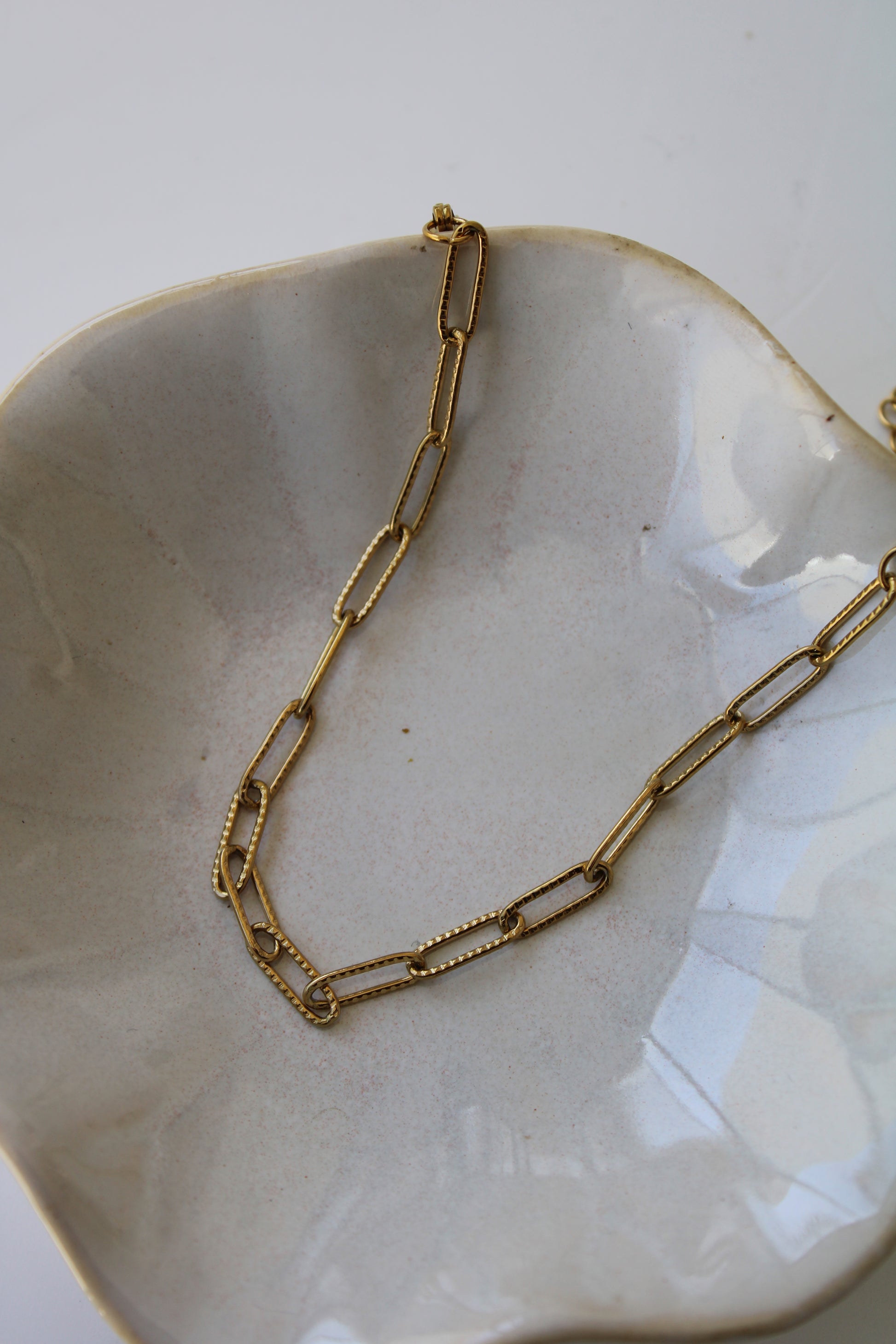 Nuestras piezas son de acero inoxidable con baño de oro de 18k, que no mancha, no se oxida y es de bajo mantenimiento.
