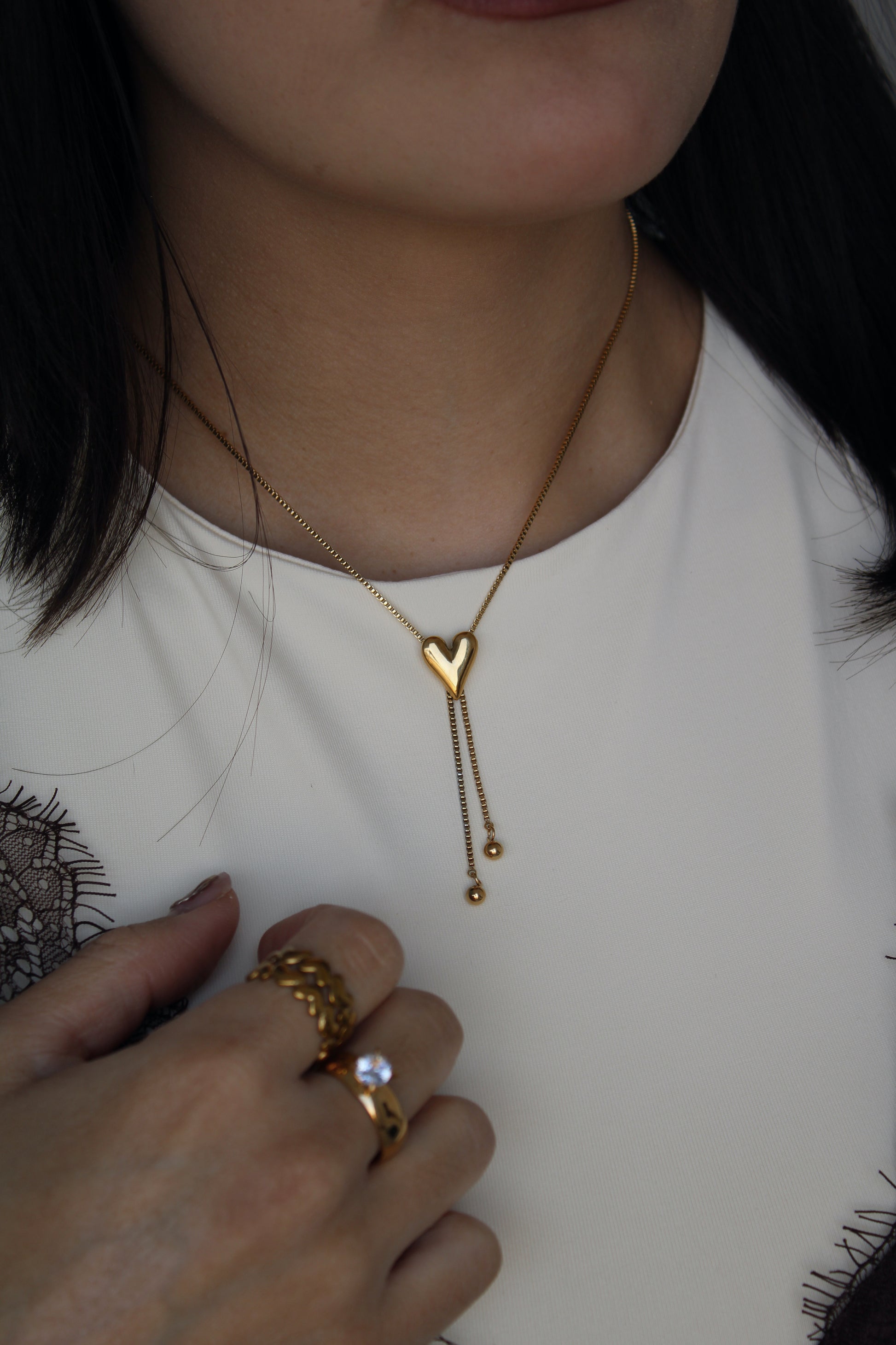 Collar de acero inoxidable con dije de corazón ajustable.