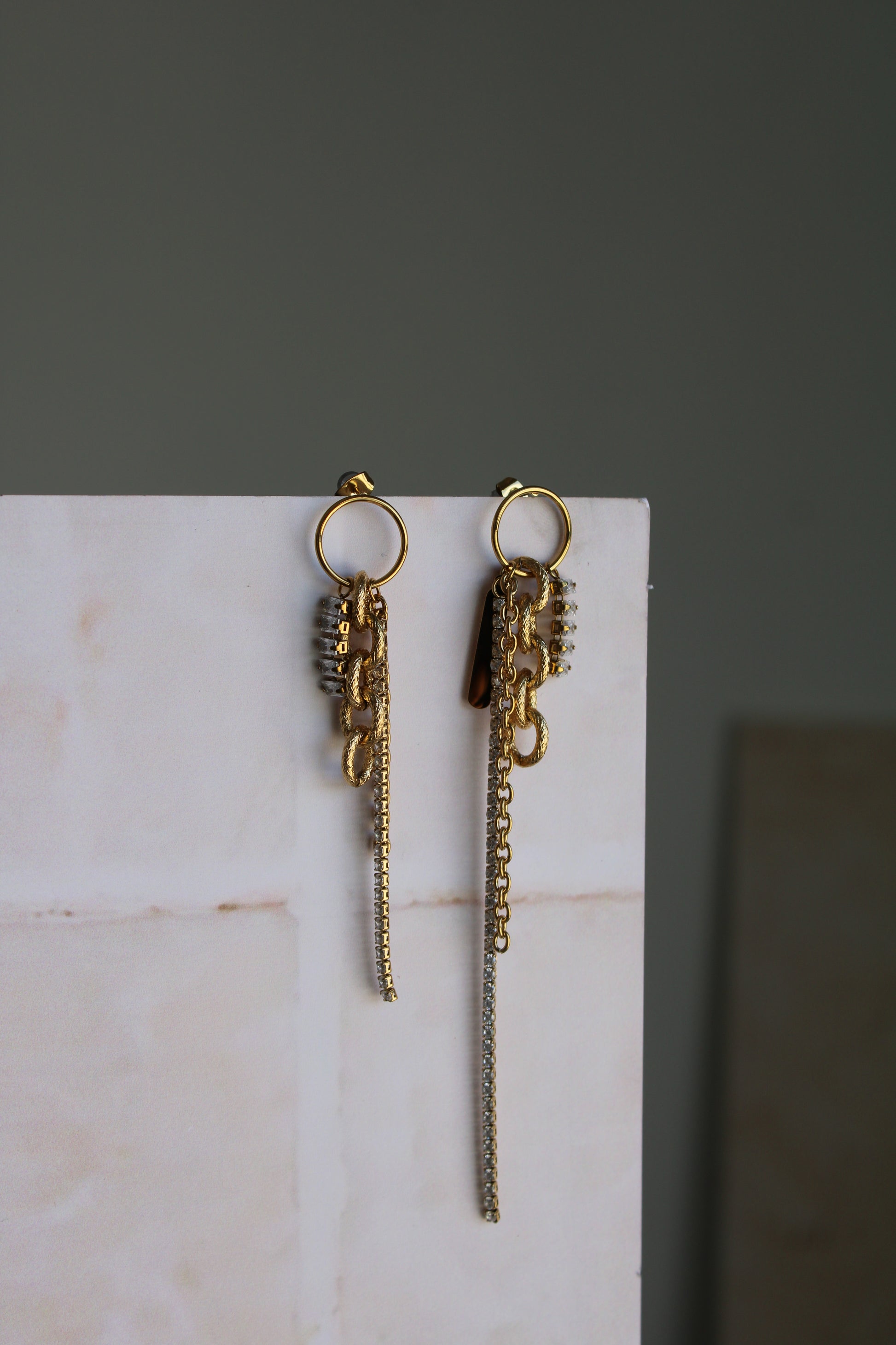 Pendientes con diseño de desigual con aro con cadenas y brillos.