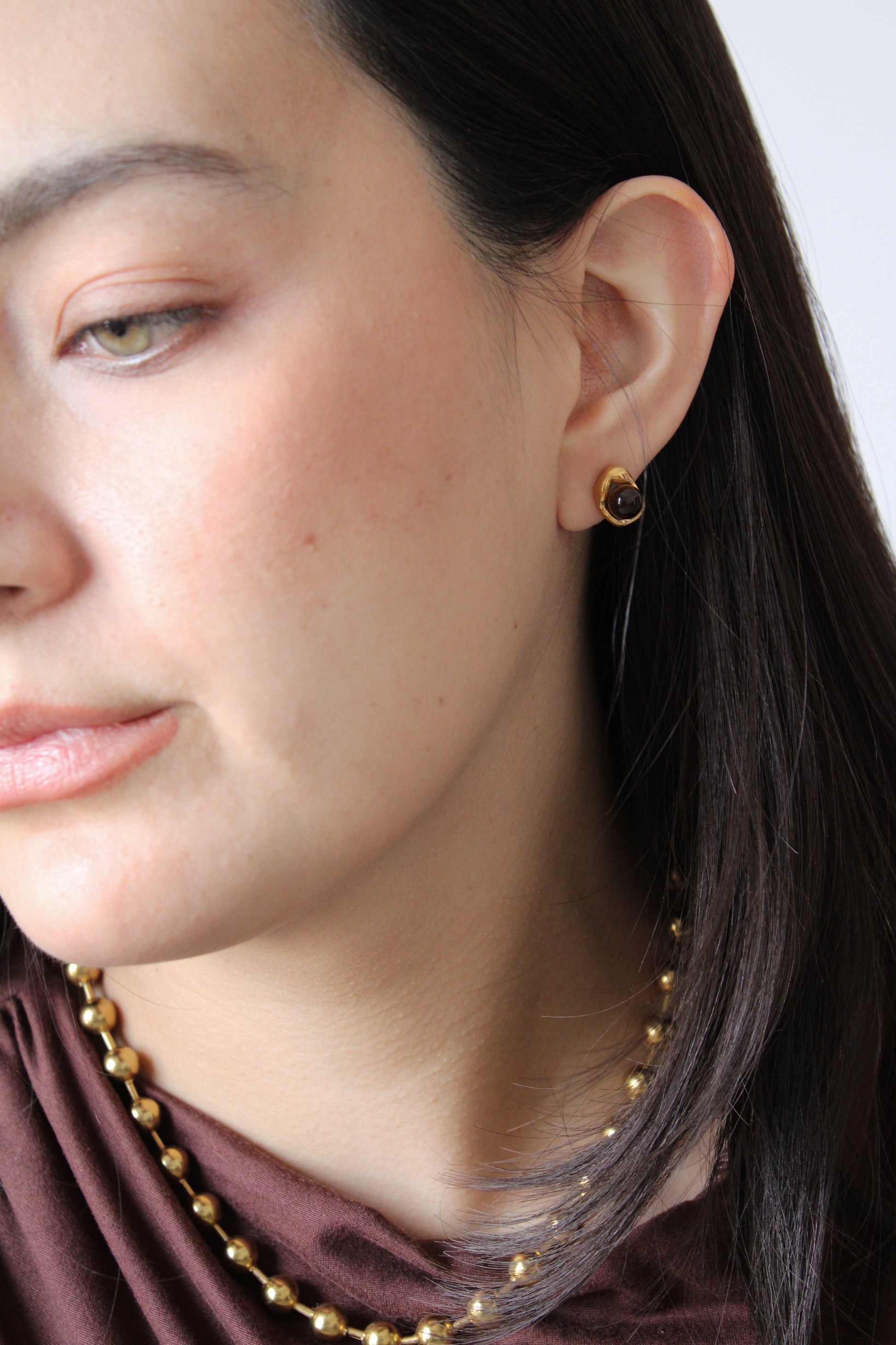 Aretes con piedra natural ojo de gato.