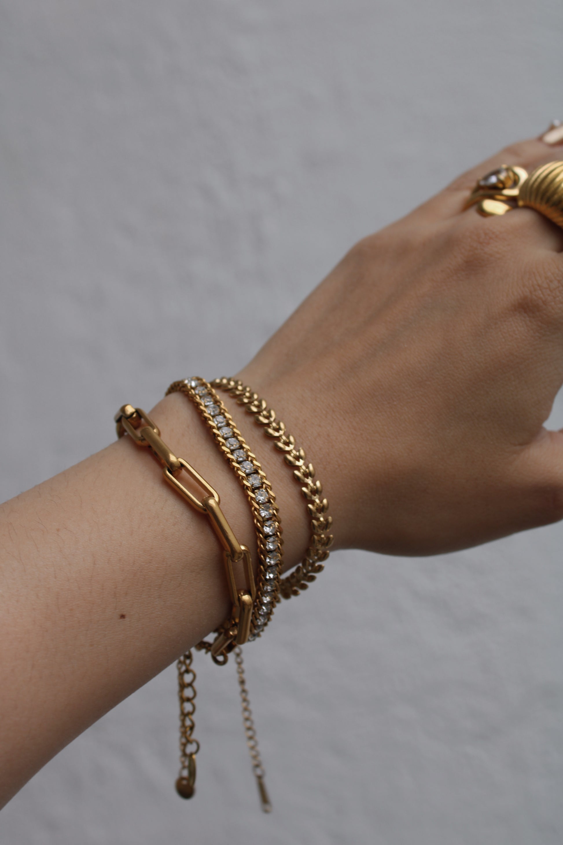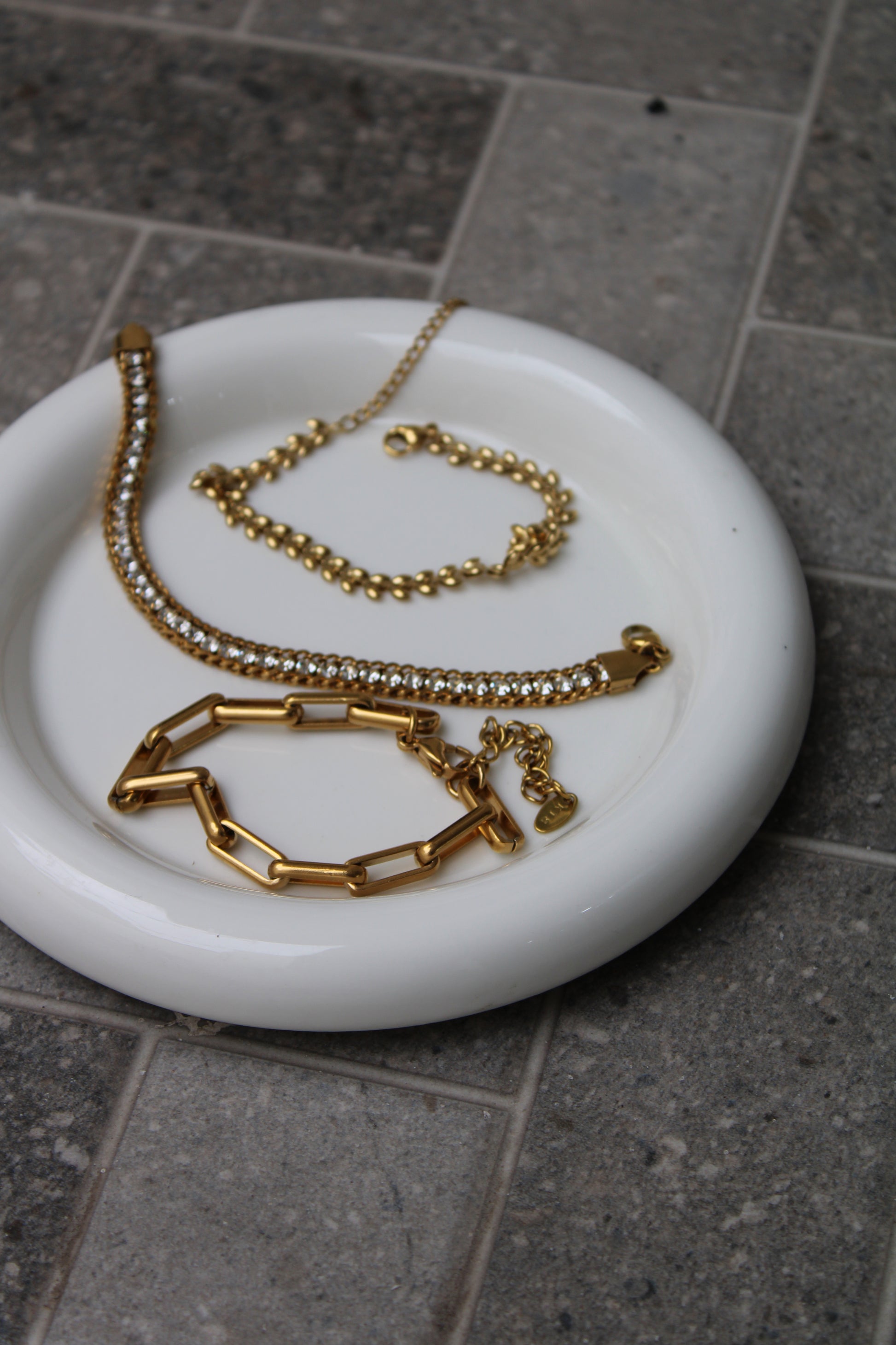 Nuestra joyería es de acero inoxidable. Las piezas doradas tienen un baño de oro laminado de 18K y las plateadas son del color natural del acero. ✨