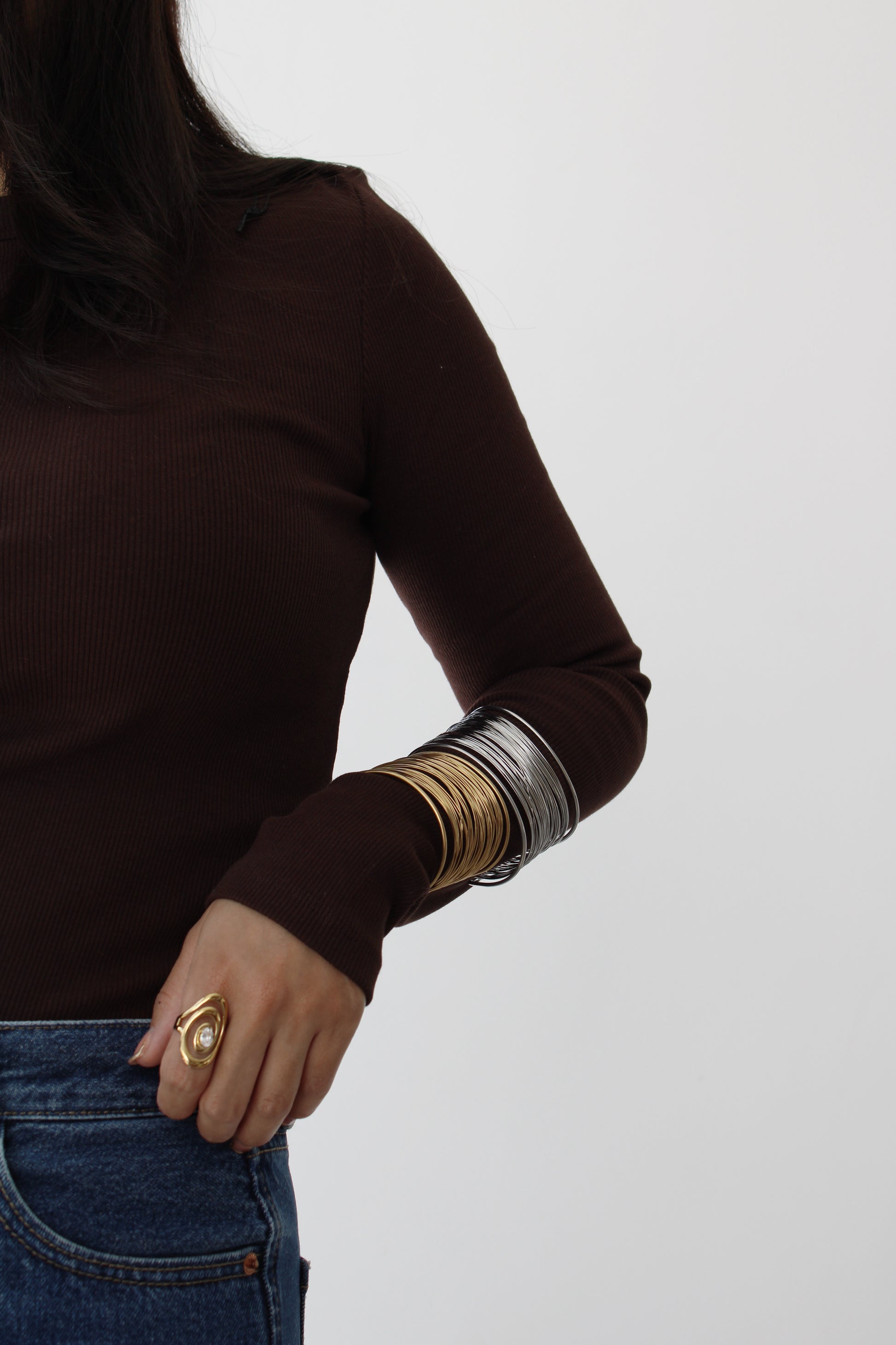Pulsera ajustable con diseño de alambre de acero inoxidable.